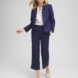 Linen Scallop Hem Crop Pants