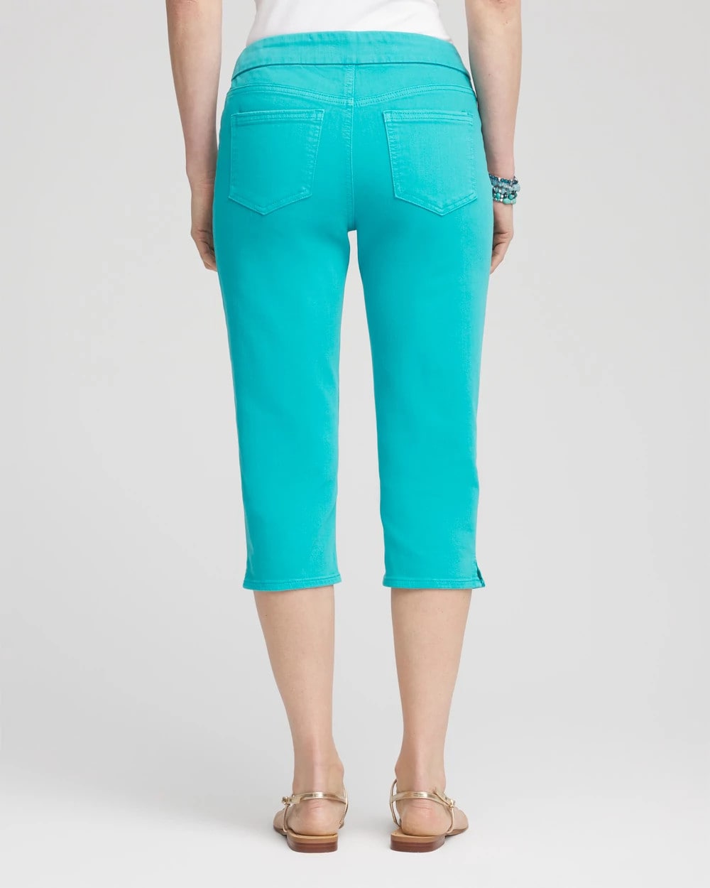 Style and comfort come together for our 17″ Pull-On Capri Jeans. This design features high-stretch cotton-blend fabric with a clean, low-rise waistband that stays in place seamlessly. Featuring a vented hem for comfort and movement. These essential capri pants can be worn with tanks, tees, and linen tops.