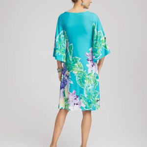 A ready-to-wear outfit, Chico’s new 3/4 Angel-Sleeve Boat Neck Dress showcases a knee length flattering fit with a streamlined A-line silhouette and boat neckline.