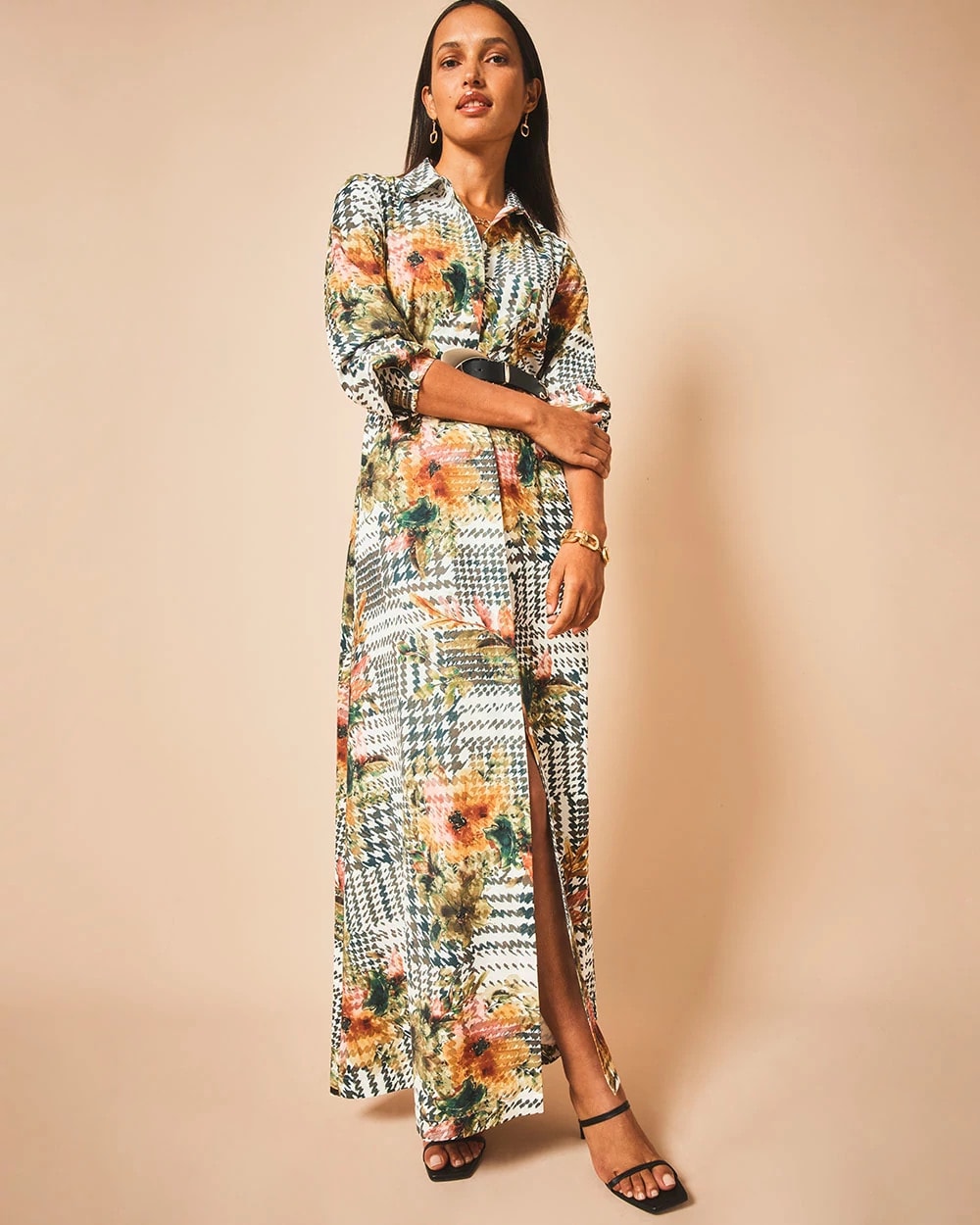 Artisanal Floral Print Maxi Shirtdress