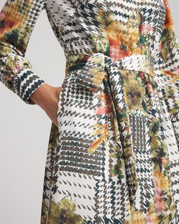 Artisanal Floral Print Maxi Shirtdress