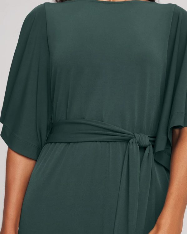 Belted Flutter-Sleeve Maxi Dress
