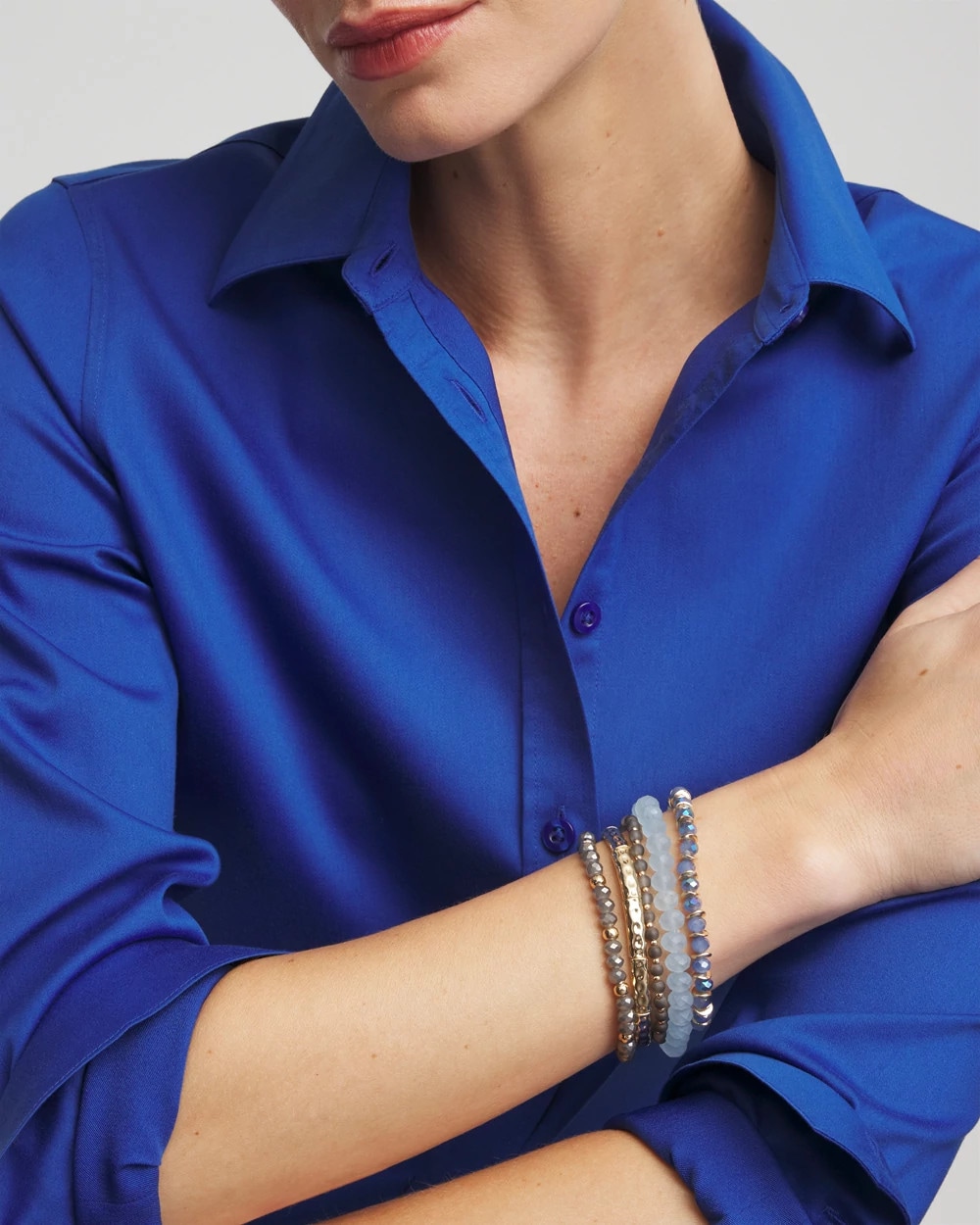 Chico’s customer favorite stackable bracelet sets got an upgrade for the season. Add this new Stretch Set of Five Bracelets to your jewelry box. Mixed-media beaded bracelet stack of five. Pair with other pieces from Chico’s new collection.