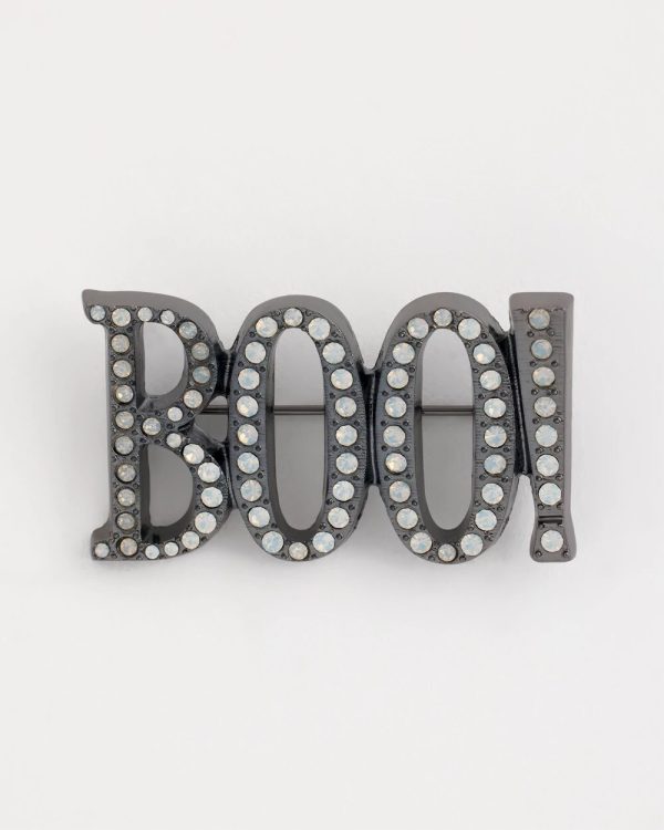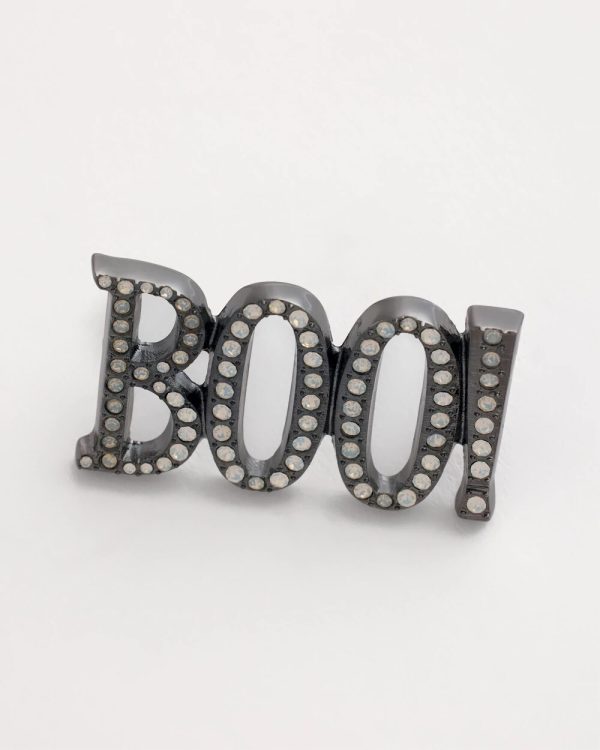 Embody the spooky season in this adorably chic Boo! Brooch. Pin to your clothing or bags for an instant dash of fun to your fashion sense.