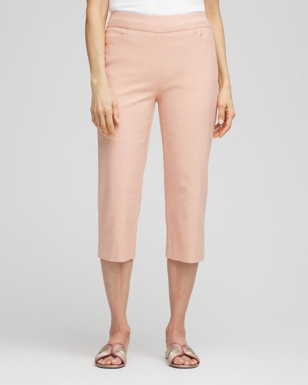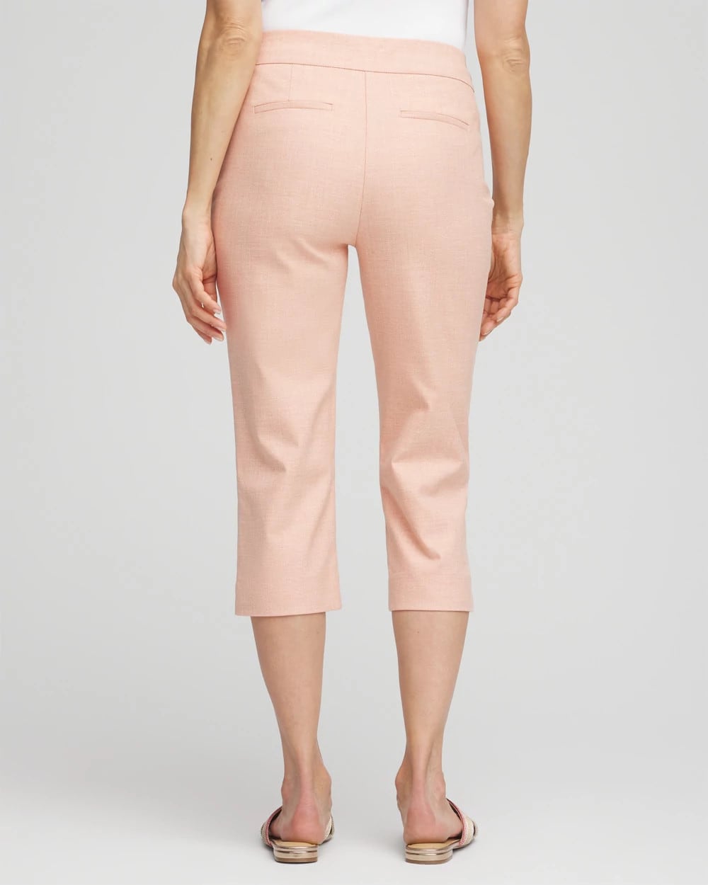 This new debut of Chico’s Brigitte™ Cross Dye Capri Pants showcase a slim leg and ultra-flattering fit. Showcasing Chico’s signature So Slimming® built-in shaping solution, extending 180 degrees around for the ultimate flattering fit. Featuring stretch-and-recovery, slim-stretch fabric.