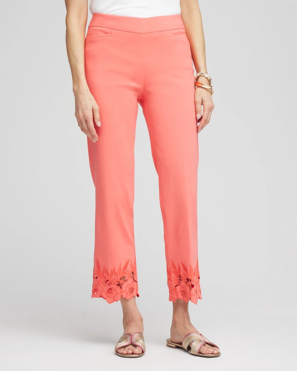 Upgrade your cropped pants wardrobe with Chico’s new Brigitte™ Cutout Pull-On Cropped Pants. Featuring cutwork detailing on the hems, and premium soft stretch fabric.