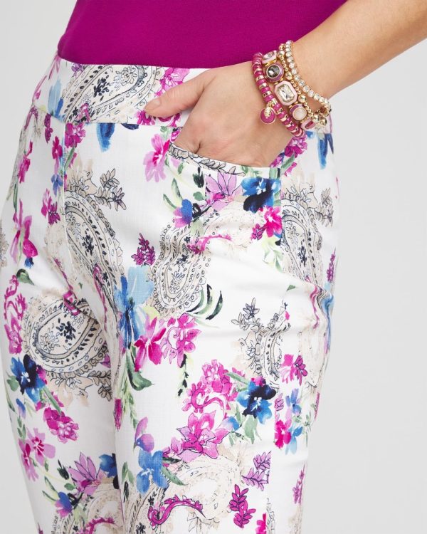 This new spring iteration of our Brigitte™ 180 Paisley Floral Cropped Pants showcase a slim leg and stunning print in coveted slub-blend fabric. Showcasing Chico’s signature So Slimming® built-in shaping solution, extending 180 degrees around for the ultimate flattering fit. Featuring stretch-and-recovery breathable and sumptuous slub fabric.
