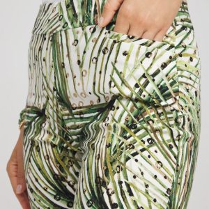 The Brigitte™ Slim Ankle Palm-Print Pants have a So Slimming® panel that extends all the way around the body, slimming and trimming your shape for a smooth look and feel. Angled, front welt pockets enhance the effect. Featuring faux back welt pockets. The rise sits just below the natural waist, offering comfort and style for everyday or party wear.