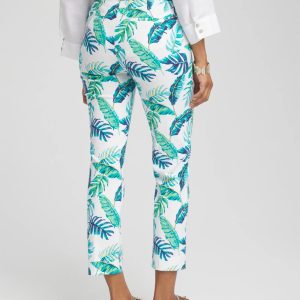 This new iteration of our Brigitte™ Cropped Pull-On Pants feature a slim leg and cropped silhouette with a stunning tropics-inspired palm tree motif. Featuring Chico’s signature So Slimming® built-in shaping solution, extending 180 degrees around you, sculpting and smoothing your shape for a flattering look, and angled front pockets to enhance the effect. The rise sits just below the natural waist, offering comfort and style for festive or everyday wear.