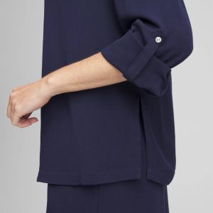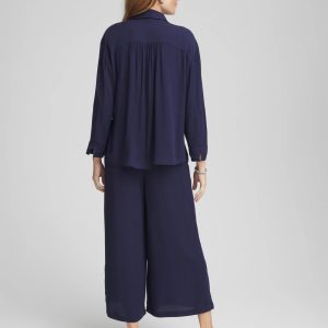 - Button-down, collared top with faux shell buttons and cool-cozy matching bottoms.