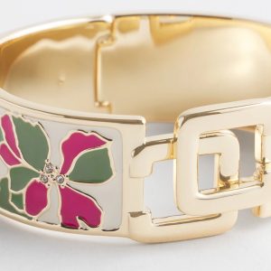 The Chico’s Click Floral Bracelet has modern style. This stylish accessory features a click hinge that locks into place, accented by the Chico’s logo. Built with wearability in mind, this accessory is the perfect accent for fashion basics.