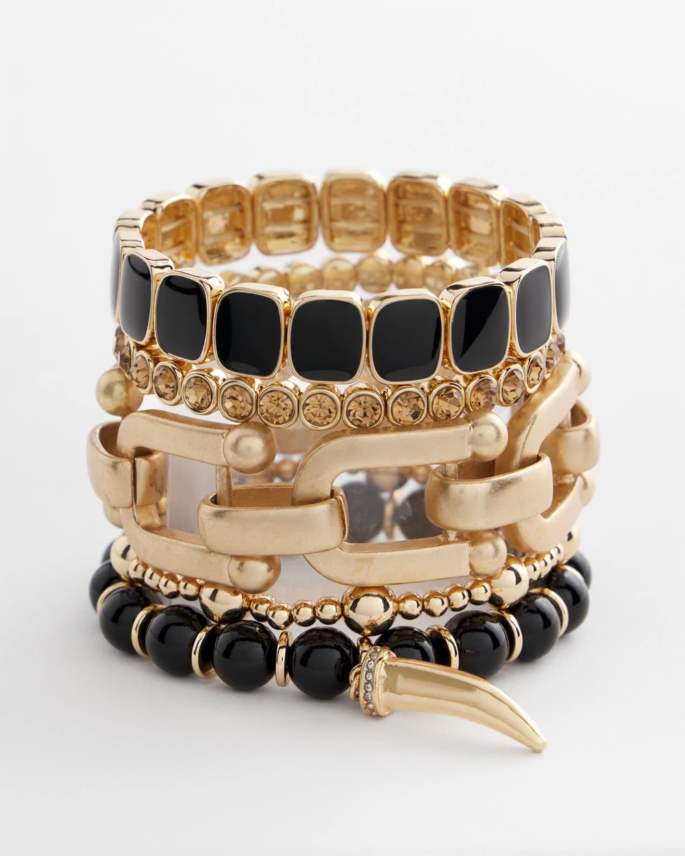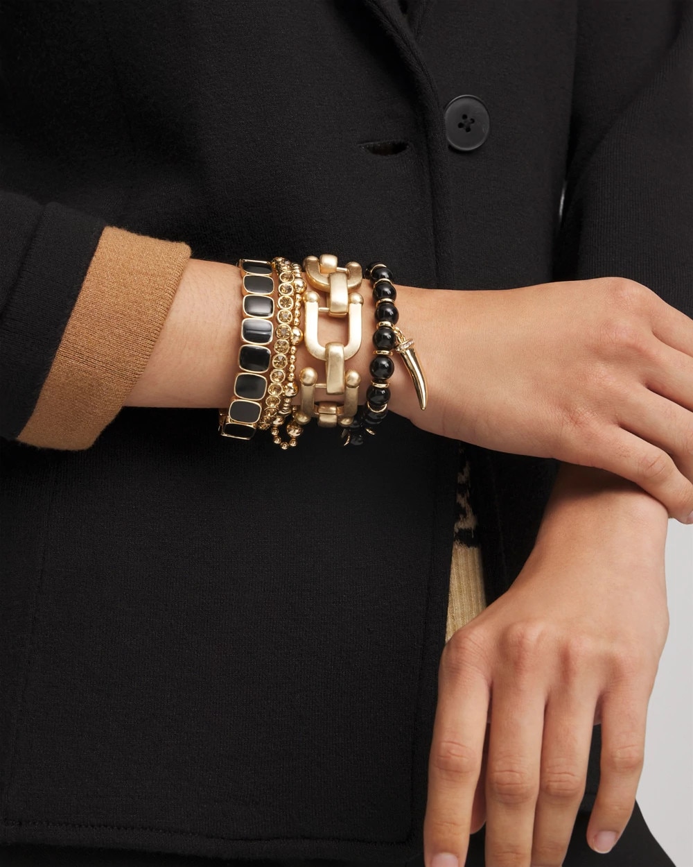 Sleek, shiny black helps define thisChico’s Originals Black Square Stretch Bracelet. Instantly elevate your style and stack with like gold tone pieces from Chico’s Bracelet Bar.