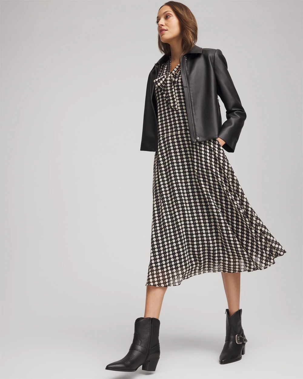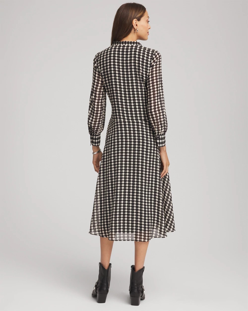 Chiffon Clip-Dot Tie-Neck Dress