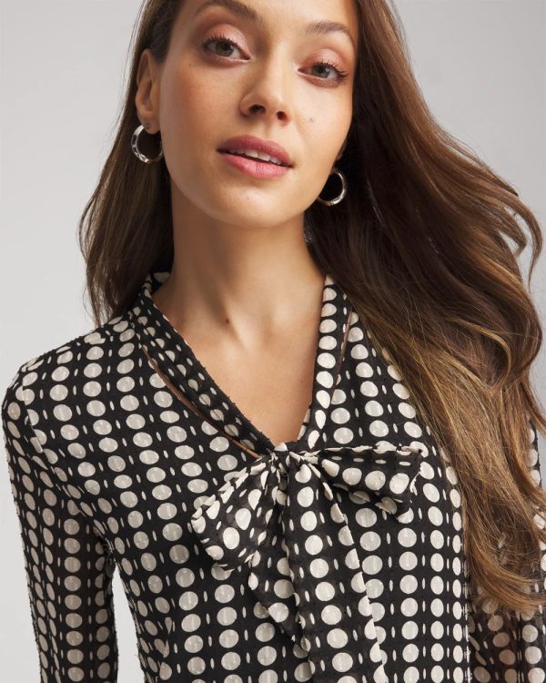 Chiffon Clip-Dot Tie-Neck Dress