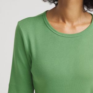 - Classic-fit tee with elbow sleeves.