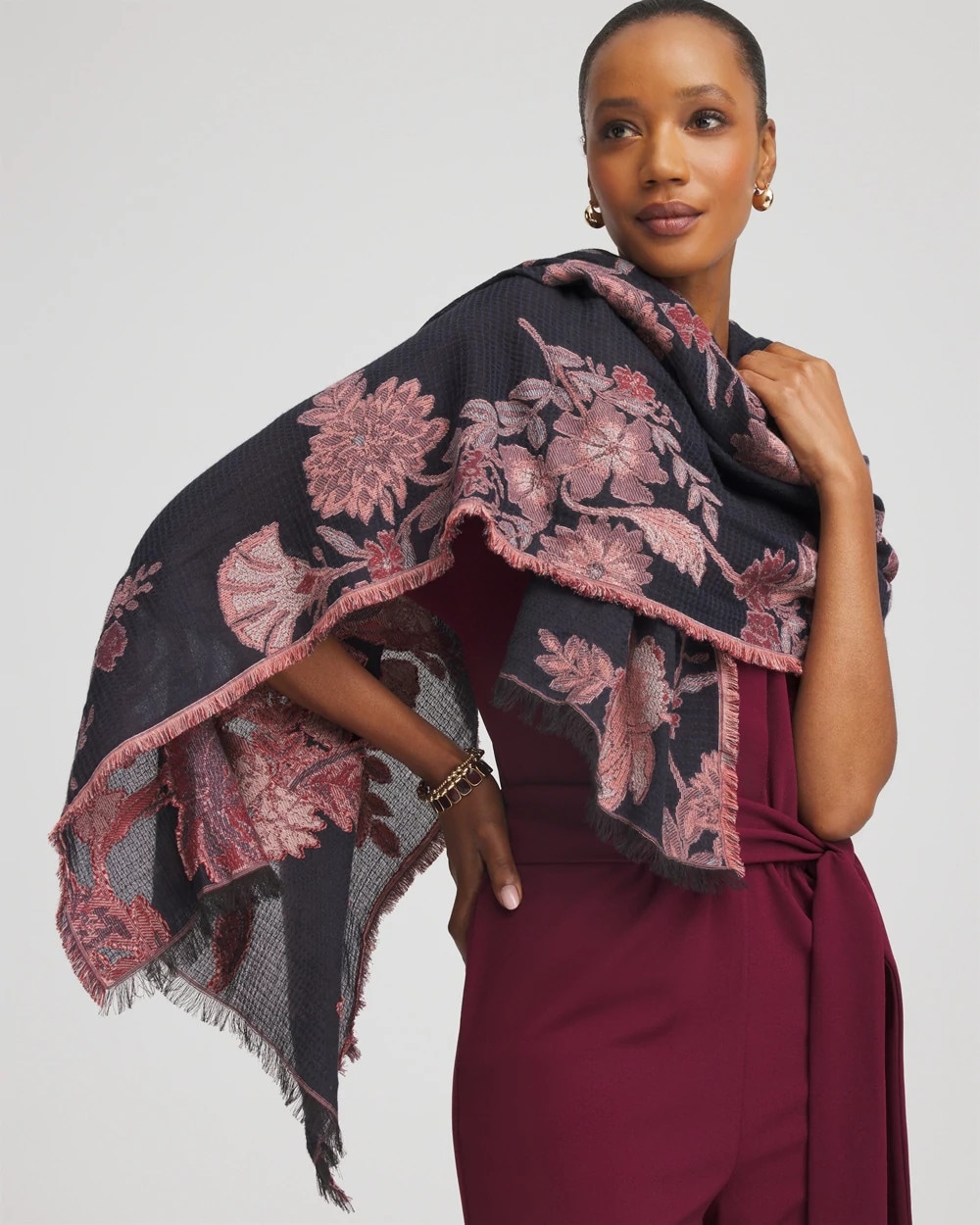 An intricate jacquard design, cotton fabrication, and eyelash finish help define this Cotton Jacquard Oblong Scarf. Featuring a floral print in the season’s most-loved hues. Wear around your neck as an evening scarf or get creative and wrap as a hair accessory. Pair with one of our scarf clips to elevate this style.