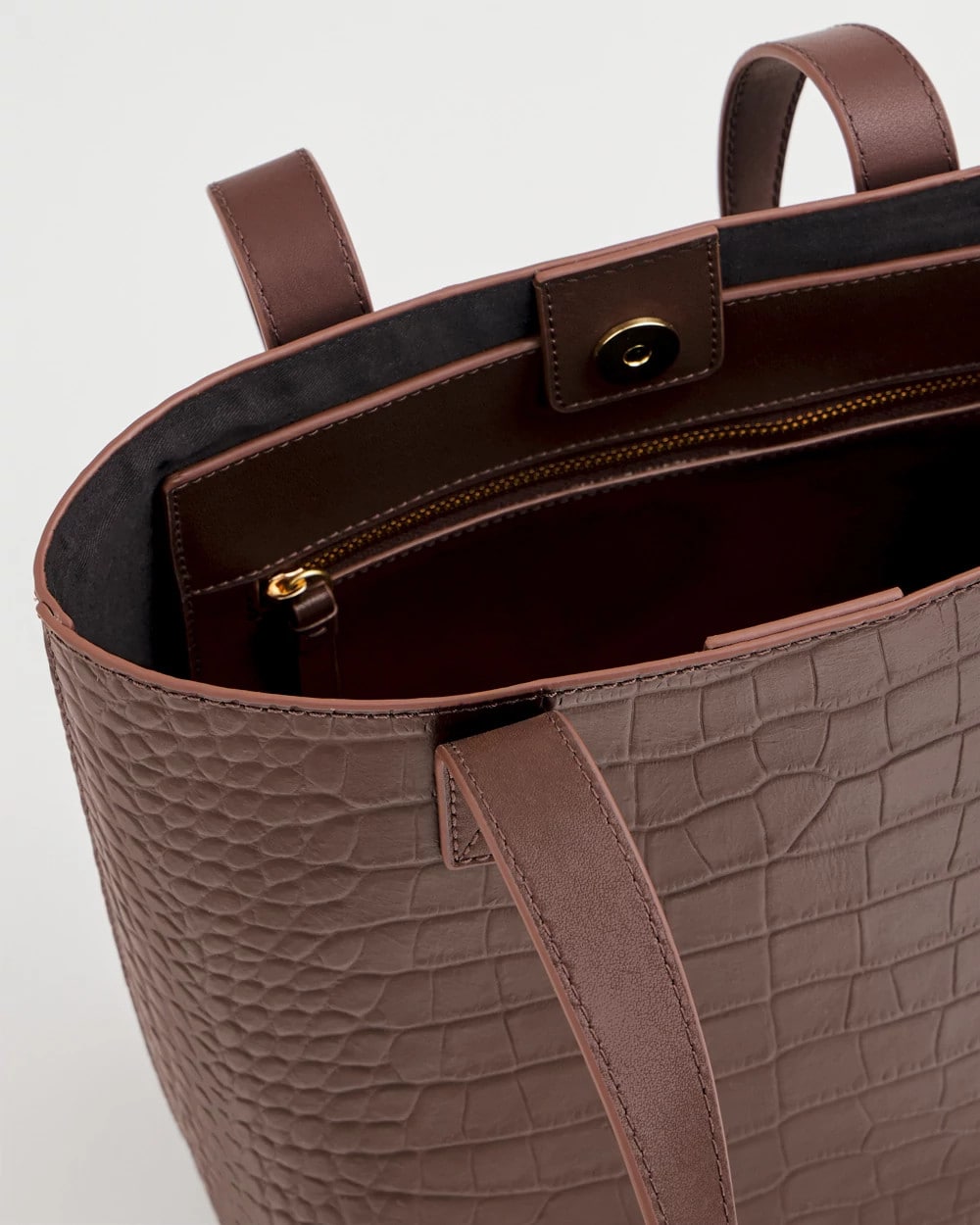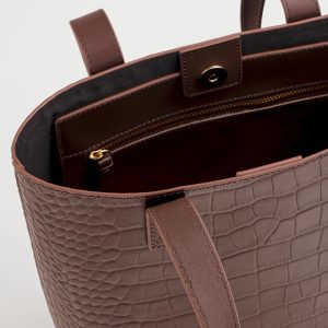 The Crocodile Motif Leather Tote Bag is crafted of soft nappa crocodile embossed leather with a cotton twill inner lining. Carry it comfortably on your shoulder—it will keep your essentials close by all day.