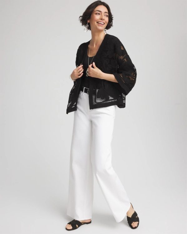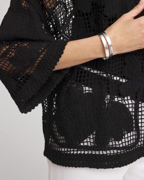 Perfect for topping everything from camisole’s to tees and tanks, this lace kimono adds a delicate, fashionable layer of femininity. Lightweight, open-front, short kimono with 3/4 sleeves.