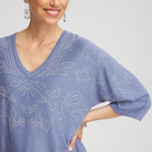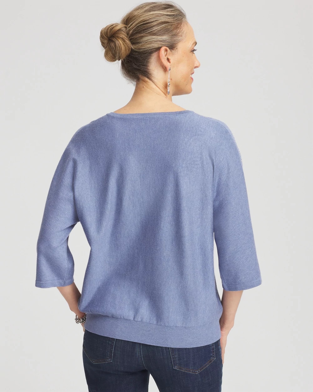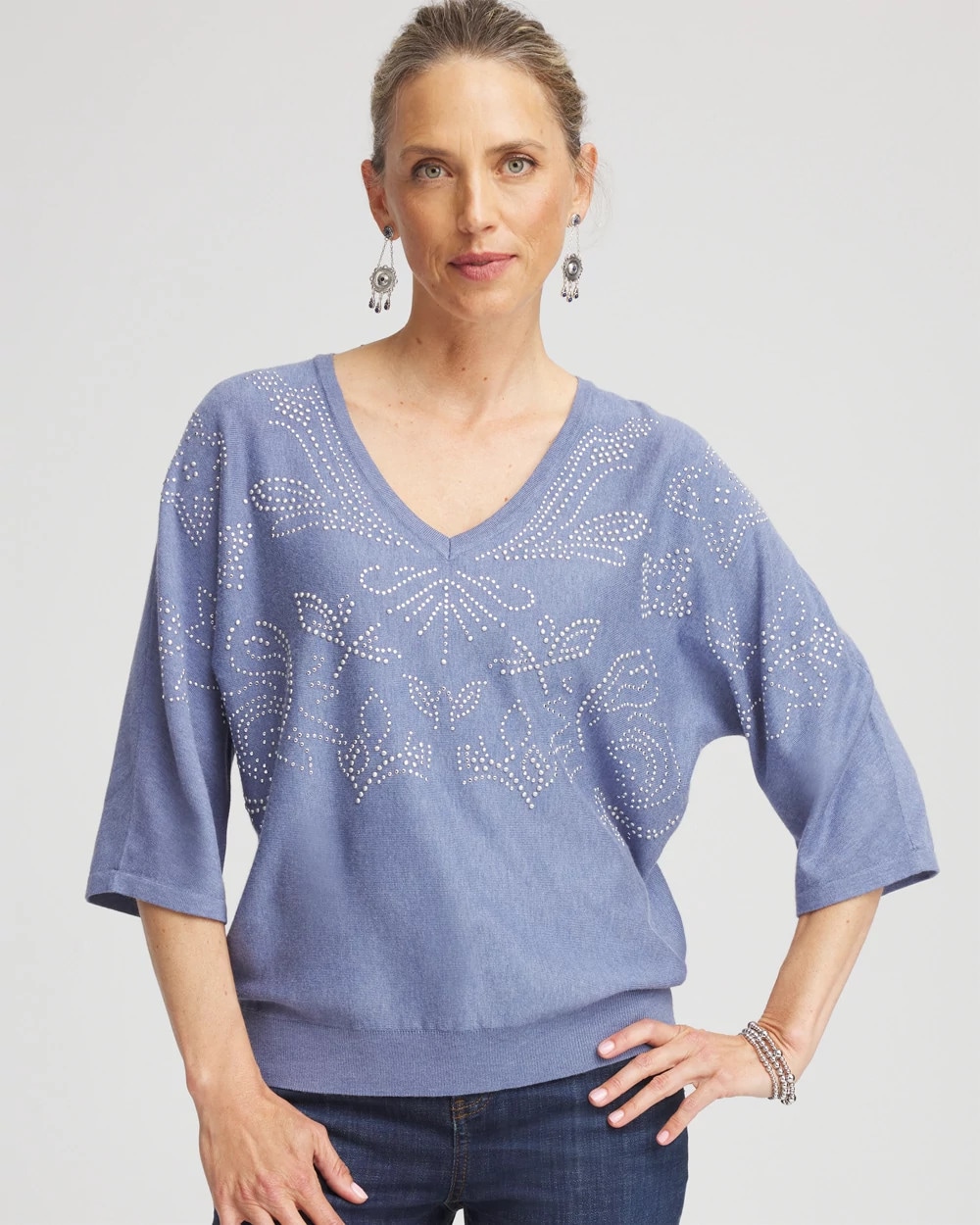 Rendered in a soft rayon-nylon blend, this v-neck sweater features a tapered hem and relaxed dolman sleeve. Pair with our new Emme pants, Brigitte™ or Juliet pants—for a more casual style wear with jeans by Chico’s.