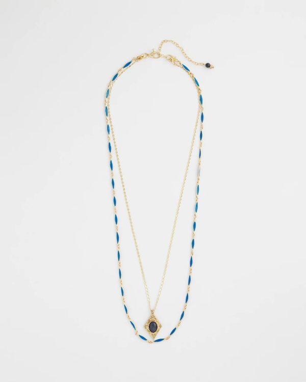 The perfect necklace to instantly elevate your style—this striking Double-Strand Sodalite Stone Pendant Necklace. Convertible necklace that can be worn two ways. Part of our Collector’s Stack Collection.