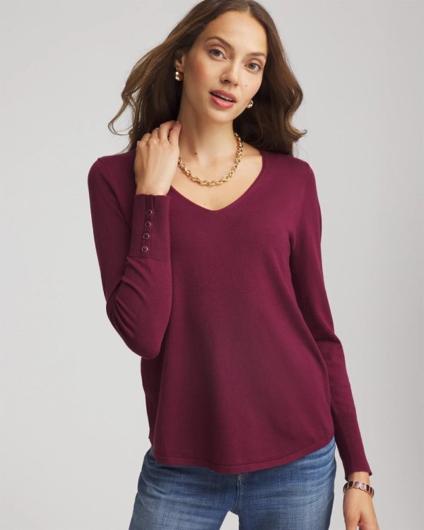 The Ella V-Neck Pullover Sweater offers a simple way to add style to your everyday elevated wardrobe. The cuffs have ribbing and non-functional button detailing for added fashion sense. Paired with our Brigitte™, Emme pants or jeans, this sweater is sure to be one of your seasonal favorites.