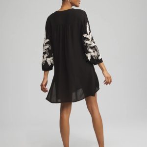 Feel confident in our Embroidered Coverup Dress. This bracelet sleeve coverup features a flattering V-neck with shirring and tassel accents, plus lovely embroidery details. Pair it with your favorite swimsuit and enjoy a walk on the boardwalk.