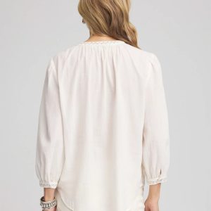 - Relaxed-fit, 3/4 sleeves, splitneck blouse.