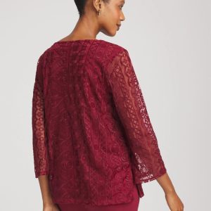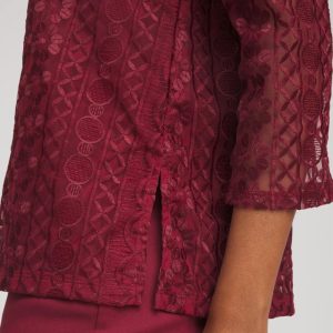 High-style construction showcasing sheer mesh sleeves, a flawless drape, and face-framing voop neckline help define this tunic. Pair with the season’s matching jeans for an instant casual chic style.