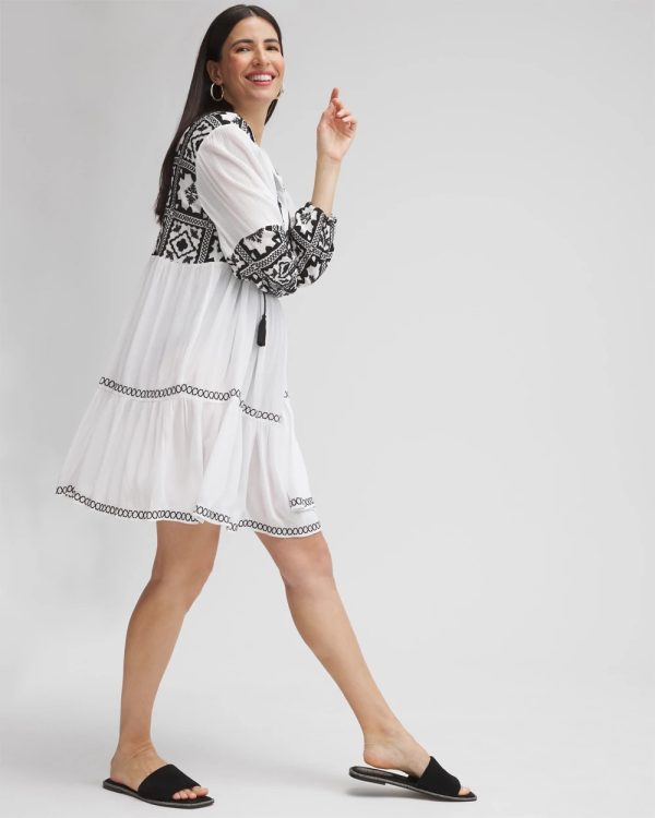 Feel confident in our Eyelet Swim Dress Coverup. This lightweight coverup features lovely eyelets and embroidery, plus a V-neck accented with tassels. Pair it with your favorite swim suit and enjoy your relaxation time.