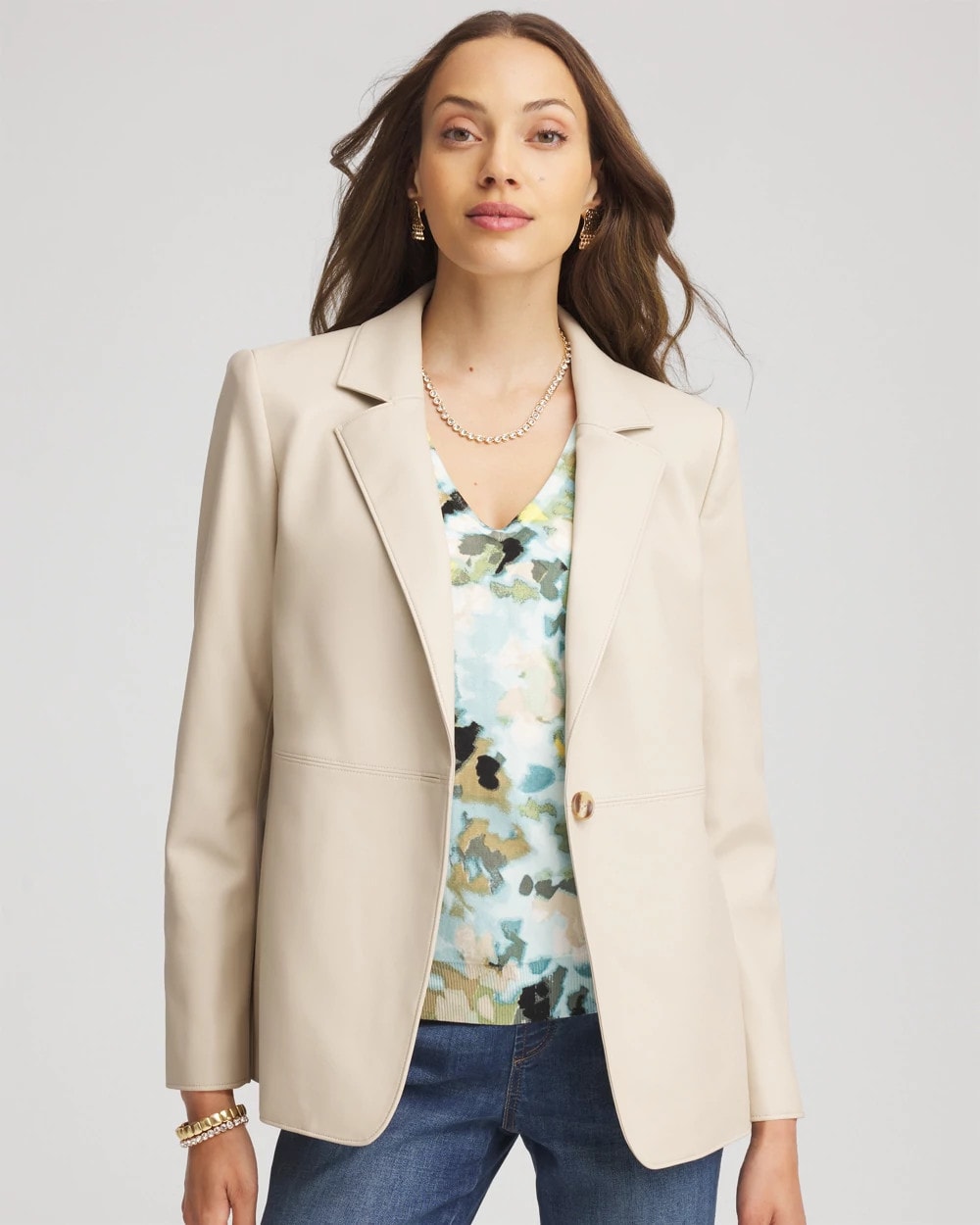 Rendered in the season’s rich earthy tones, cut from fabulous matte faux leather, this Faux Leather Blazer features a slimming seam detail at the waist and a single front button closure with notch lapels.