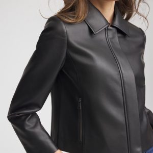 Faux Leather Zip-Front Jacket