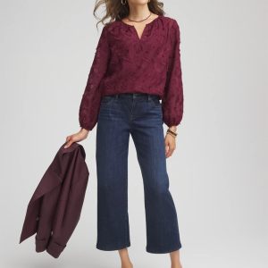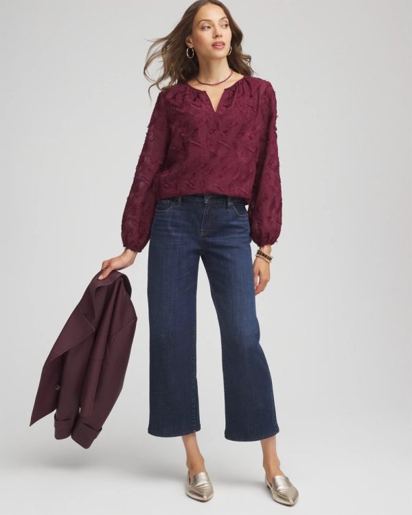 This relaxed-fit Feathered Pullover Peasant Blouse is cut from lightweight and luxurious chiffon. Featuring a face-framing split neckline; showcasing an intricate feathered motif for added dimension and style. If you loved our cream feathered blouse from last year, you will love this new hue. Pair this semi-sheer style with a cami or microfiber tank.