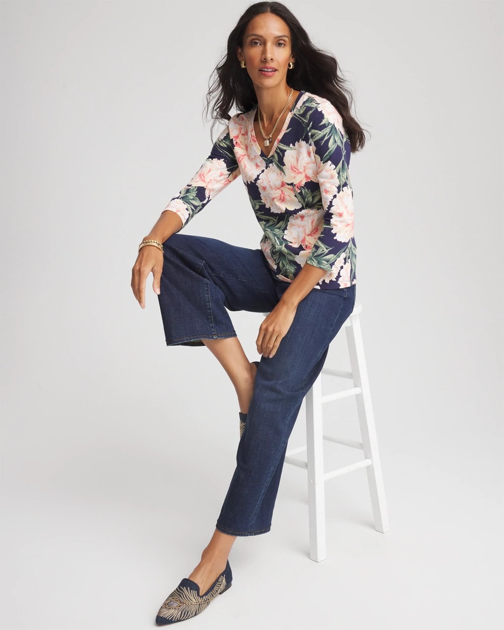 Chico’s soft-stretch Floral 3/4 Sleeve Perfect Tee is an essential for everyday comfort and style. Cut from lightweight cotton-stretch fabric, this tee features a flawlessly fit that smooths your shape. Wear everywhere, from work to special occasions, paired with our Brigitte or Emme pants.