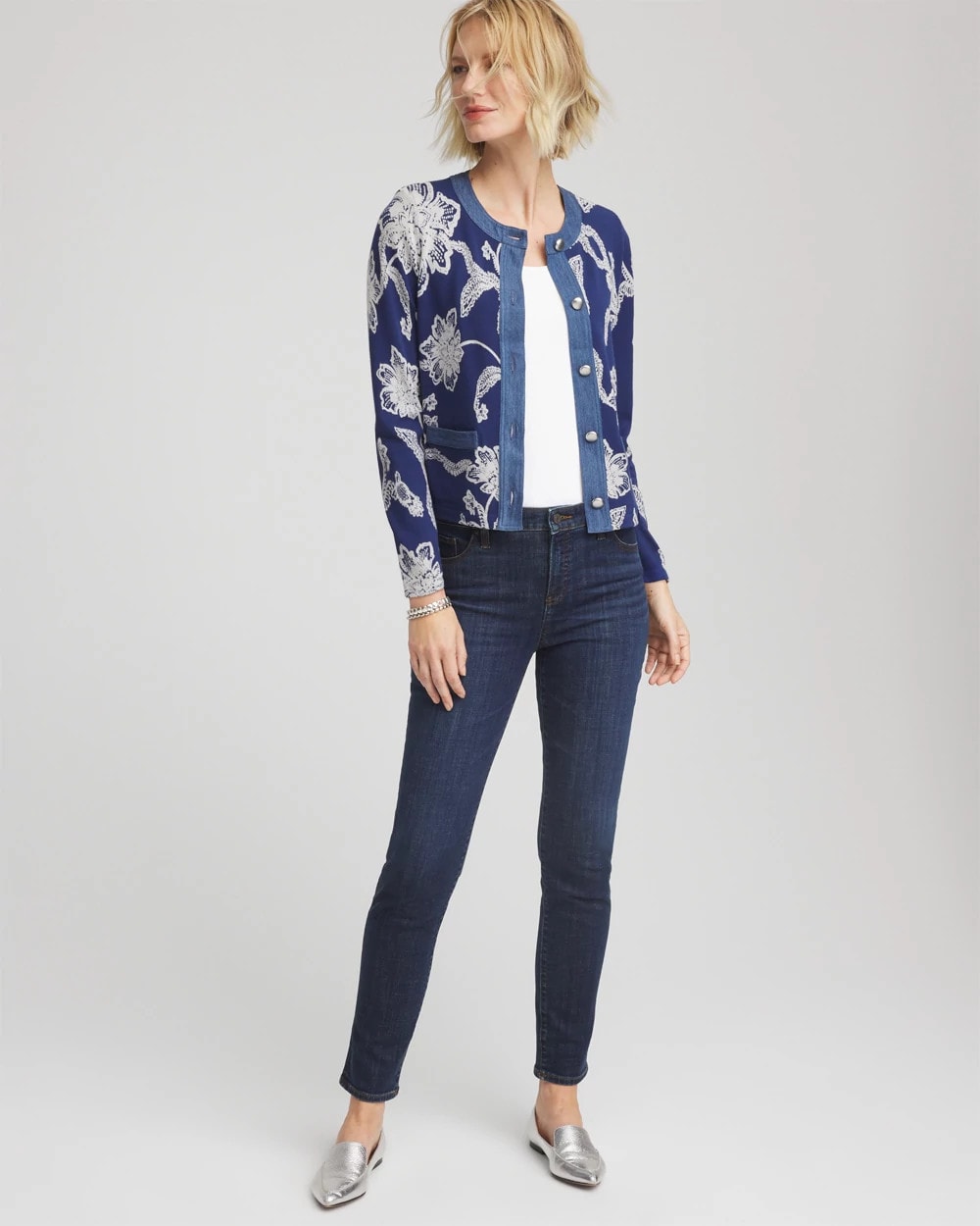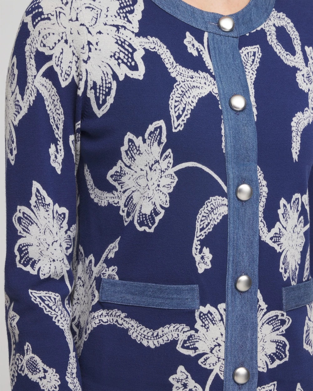 An ultra-stylish denim placket with a button-front closure help define this Floral Lady Jacket. Pair with blue jeans or dress pants for unstoppable style.