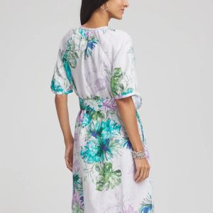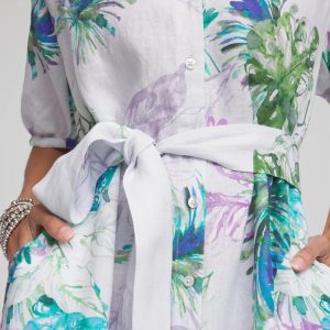 Luxurious linen is the quintessential summer fabric, it brings ease of flow and movement in this collarless, Raglan sleeved dress. Accented with a self belt and pockets, this summer dress comes in the season’s must-have playful floral print.