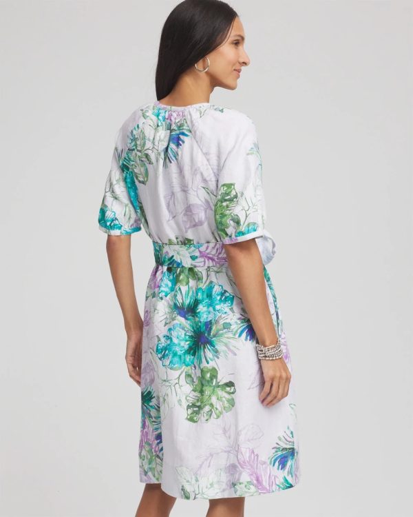Luxurious linen is the quintessential summer fabric, it brings ease of flow and movement in this collarless, Raglan sleeved dress. Accented with a self belt and pockets, this summer dress comes in the season’s must-have playful floral print.