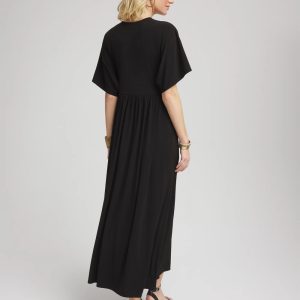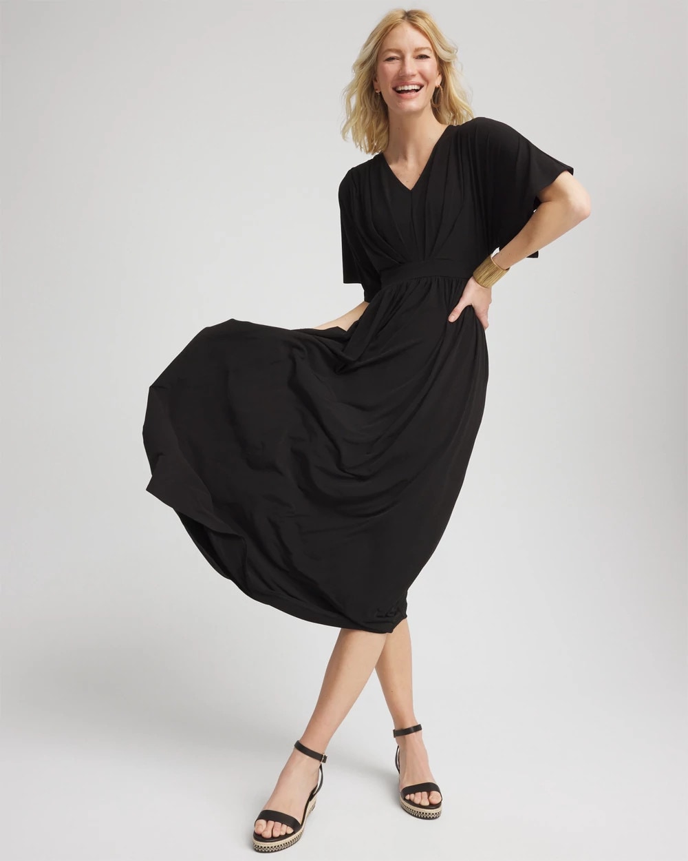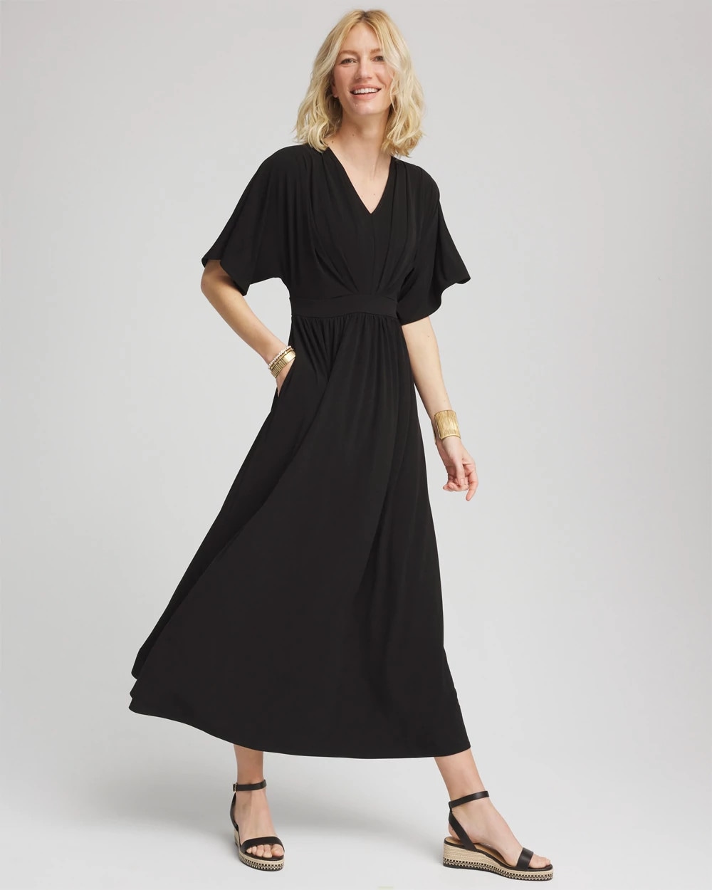 An essential style for every season, Chico’s new Flutter Sleeved Jersey Maxi Dress. Showcasing a flattering fit with a streamlined A-line silhouette and split neckline.