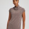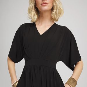 - Fashionable, relaxed-fit with an A-line drape, short flutter sleeves, and split neckline.