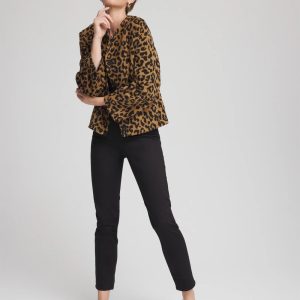 Fabulous and cozy come together with our lined Fuzzy Collarless Animal Print Jacket. Just what your seasonal wardrobe needs to help you look and feel your best. Featuring on-seam pockets, metal snaps at the collar, removable, thin shoulder pads to add structure and shape.
