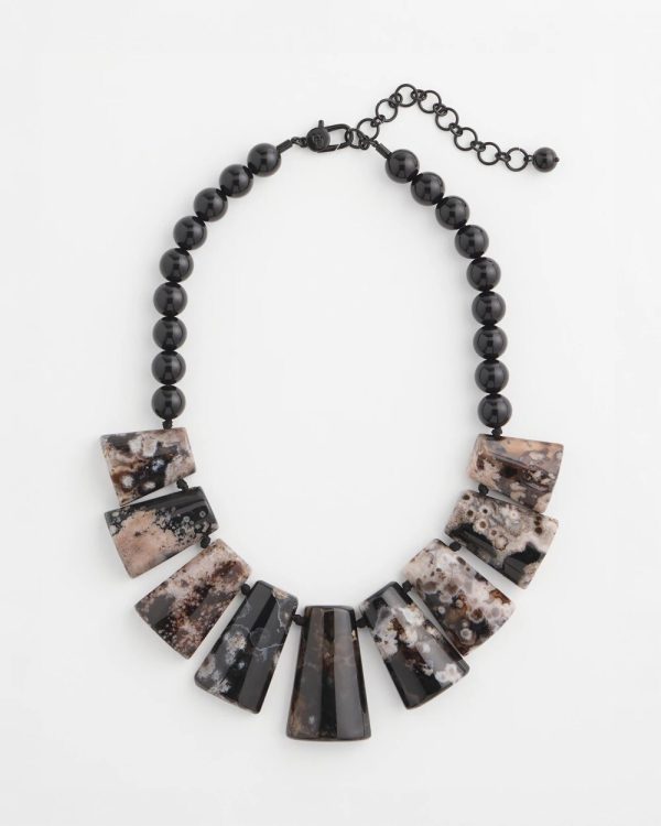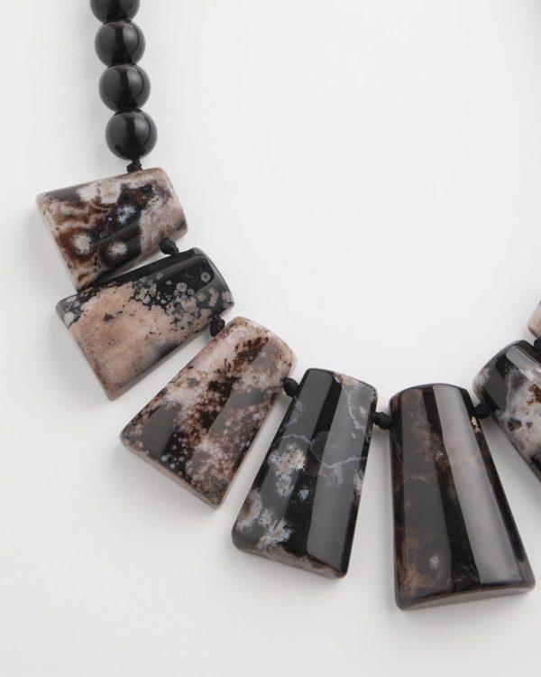 From our Stone Forager Collection. This bib necklace is one of a kind, made from feel-good authentic agate stone, each necklace will have its own unique beauty.