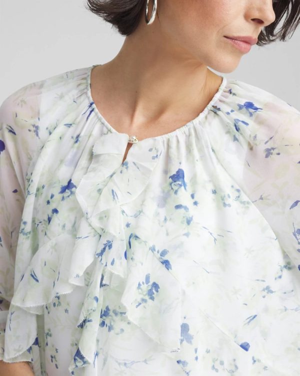‘Tis the season to turn heads. Wear this dramatic new Georgette Sheer Ruffle Blouse atop a matching Microfiber tank for a striking style this spring. Gorgeous ruffles on the front and cuffs in this must-have blouse of the season.