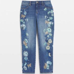 Now that you’ve found Chico’s Girlfriend Cropped Jeans, you’ll never go back. This iteration has a beautiful blue spring print to elevate your look, perfect for warmer weather. Crafted with stretch-and-recovery denim powered by our So Slimming® 180 Hidden Fit technology, these jeans sit just below the waistline and have a tummy-trimming effect. Paired with tees, shirts, and tanks, these bottoms make it easy to look stylish.