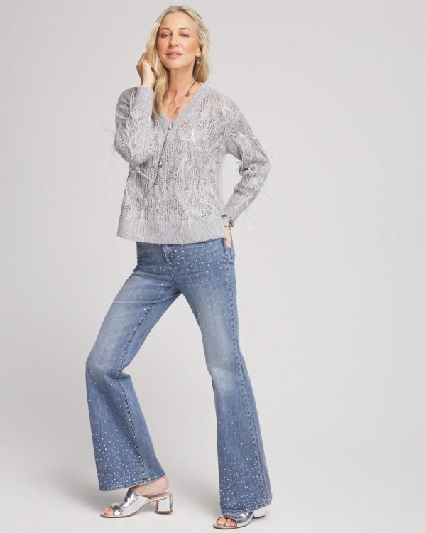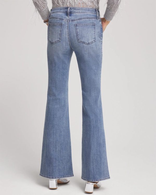 Meet our new embellished Girlfriend Flare Jeans. Featuring a subtle flare to instantly elongate your legs and beautiful all-over rhinestone detailing for a touch of class. Meticulously made in typical Chico’s fashion and with our coveted ultra tummy slimming inner lining. Pairs beautifully with your favorite Chico’s tops. Add this stunning wardrobe staple for the season to your closet.