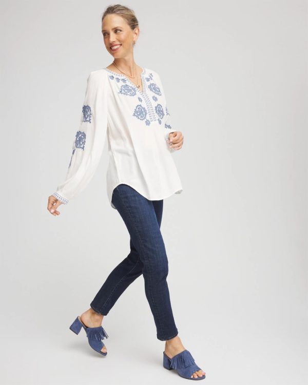 Made with a light, dark blue, or black wash denim, each showcasing unique character, these classic-rise jeans are cut for a slim silhouette. Featuring a tummy slimming interior that lifts and shapes your figure, courtesy of Chico’s proprietary So Slimming® technology.