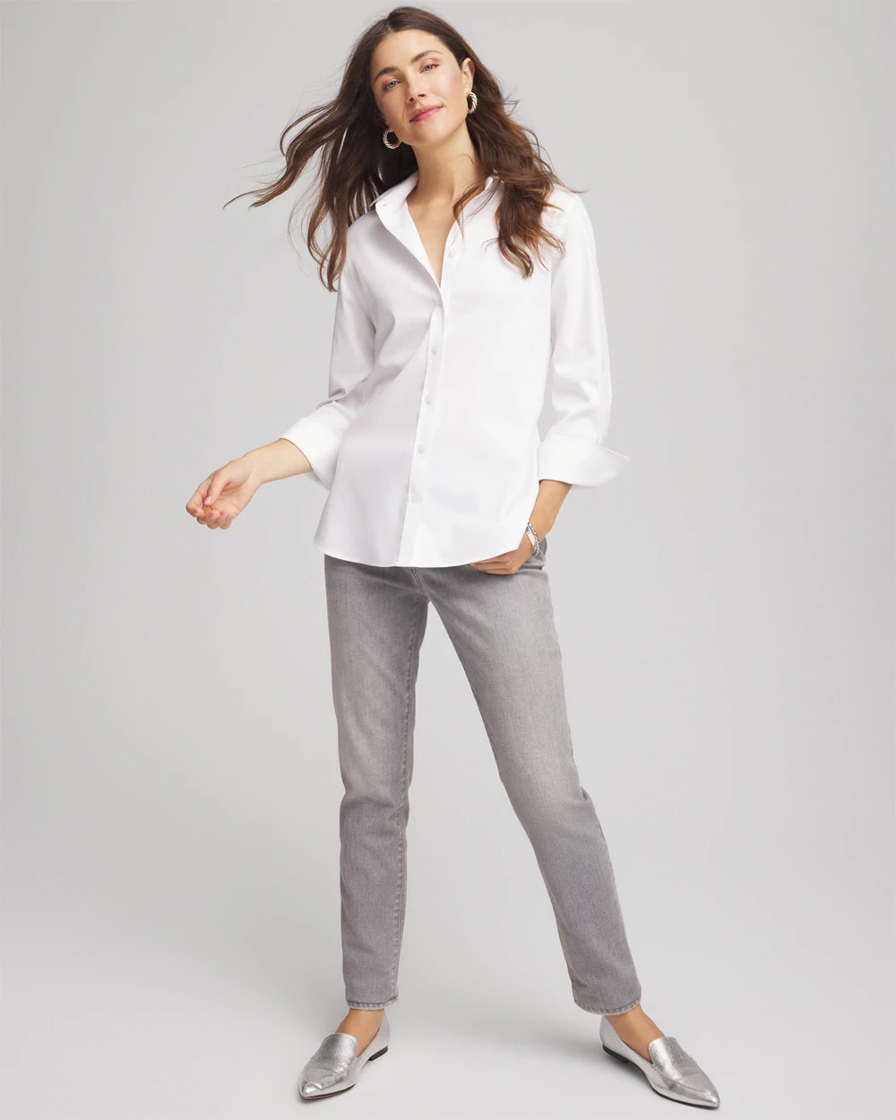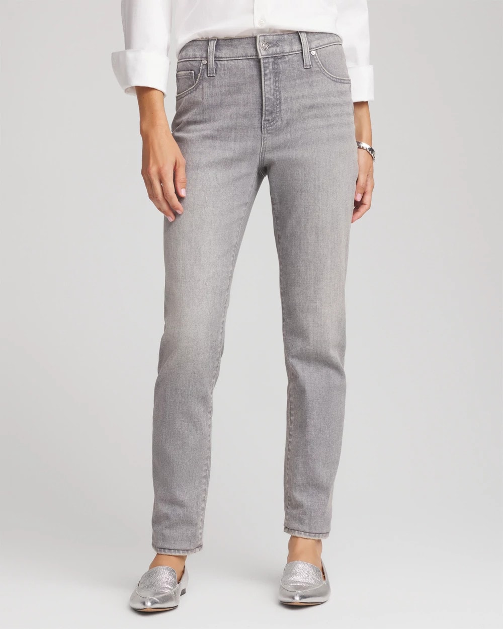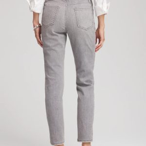 Made with a stylish gray wash denim showcasing unique character, these girlfriend jeans are cut for a slim silhouette. Featuring a tummy slimming interior that lifts and shapes your figure, courtesy of Chico’s proprietary So Slimming® technology.