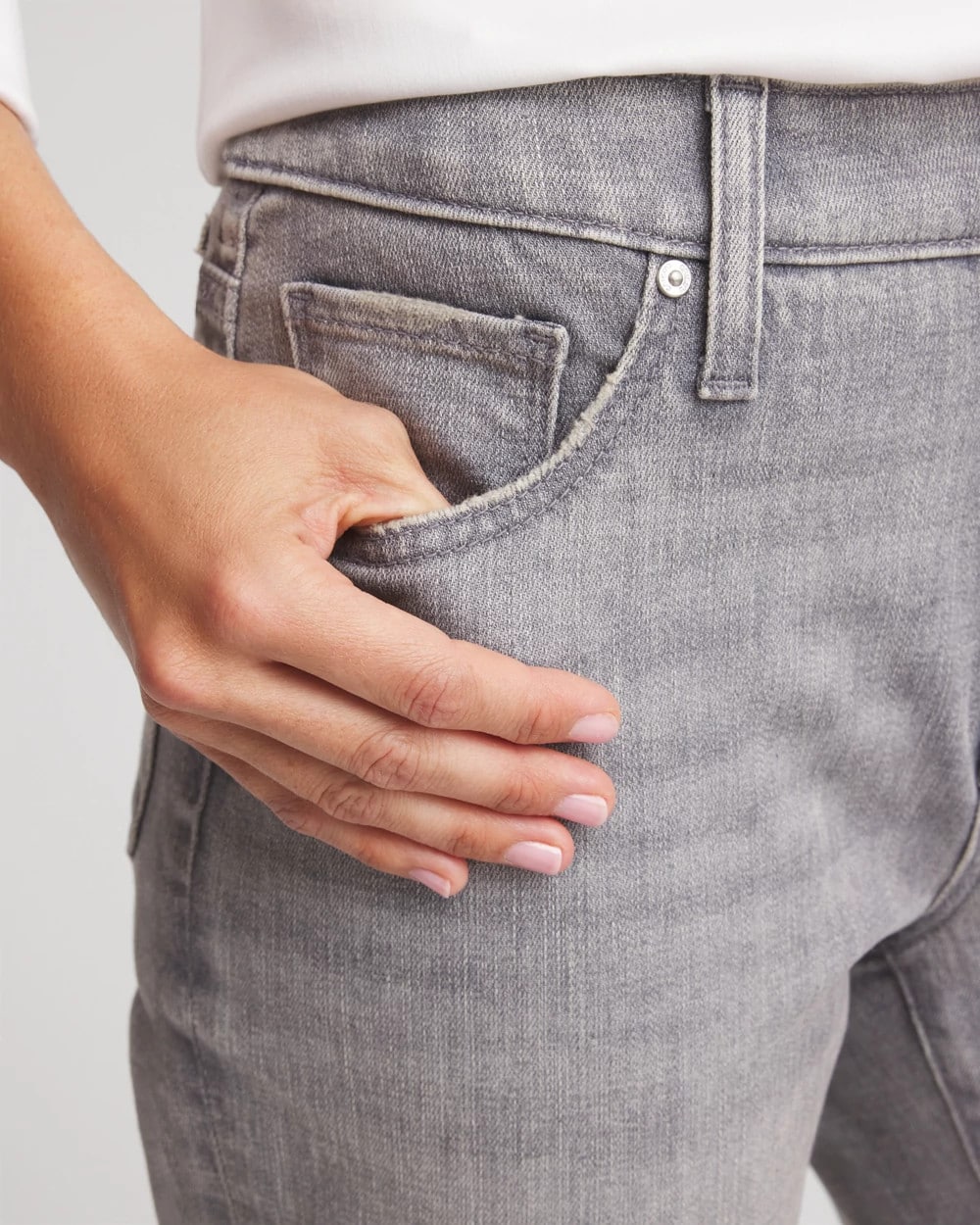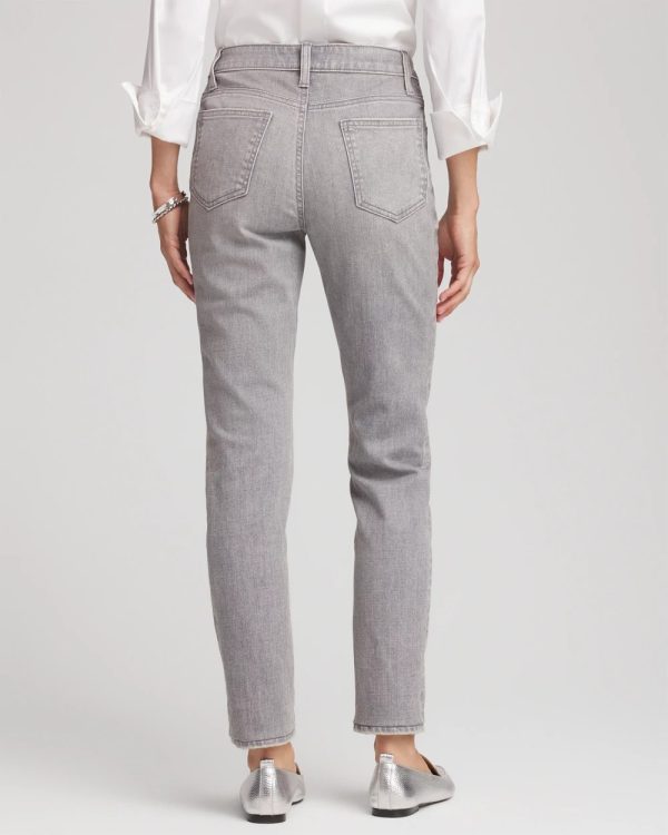 Made with a stylish gray wash denim showcasing unique character, these girlfriend jeans are cut for a slim silhouette. Featuring a tummy slimming interior that lifts and shapes your figure, courtesy of Chico’s proprietary So Slimming® technology.