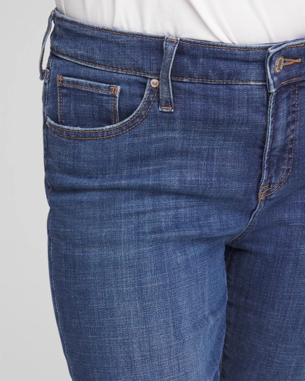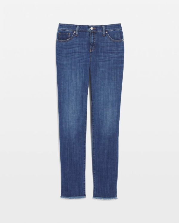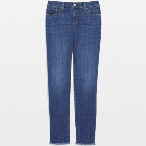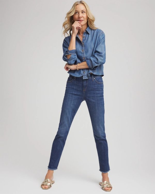 Made with a classic blue wash denim showcasing subtle vintage character, these jeans sit just below the natural waist and are cut for a slim silhouette with frayed cuffs. Featuring a tummy slimming interior that lifts and shapes your figure, courtesy of Chico’s proprietary So Slimming® technology.