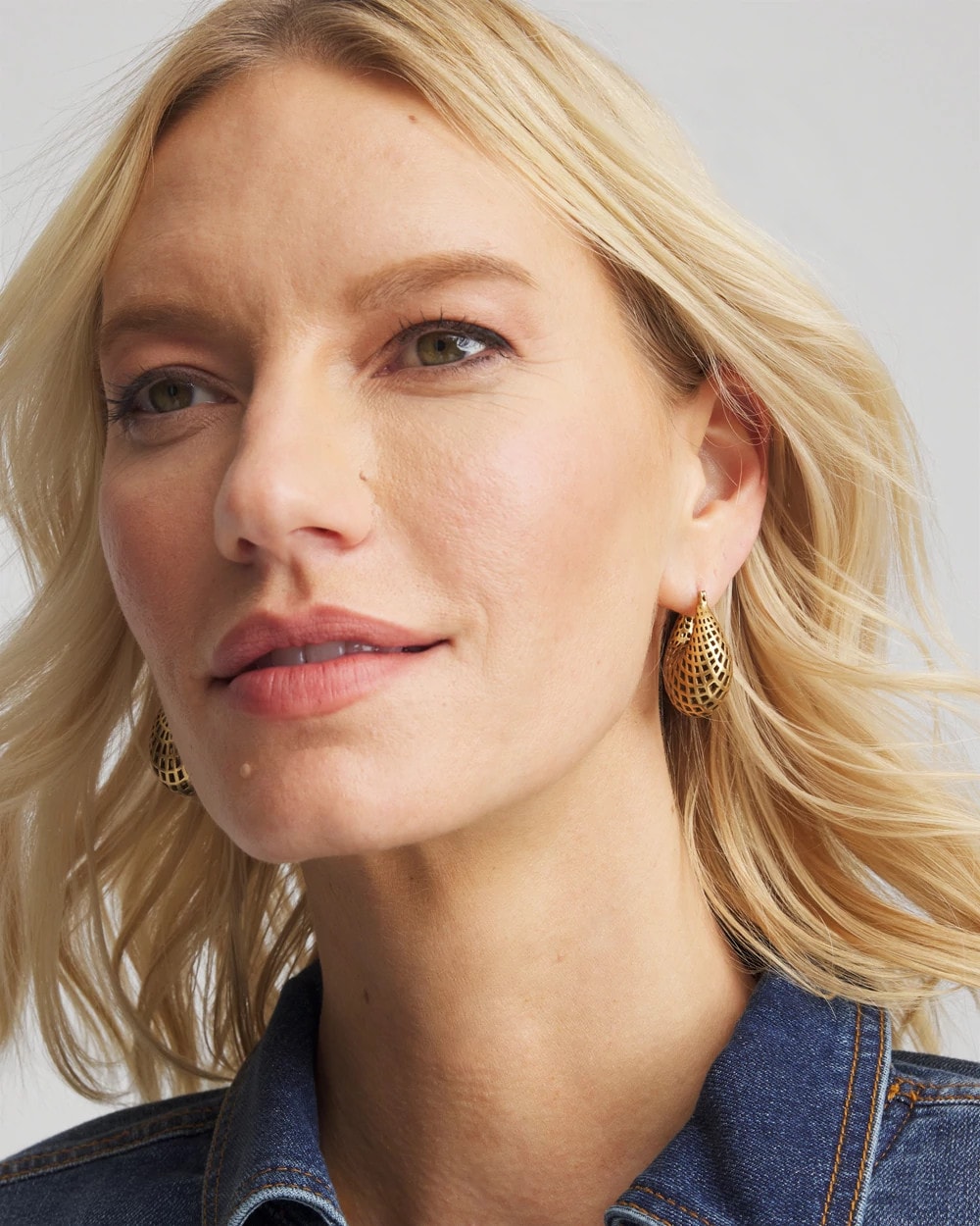 Pair these new Gold Lattice Puff Hoop Earrings with all your favorite gold-tone Chico’s jewelry.