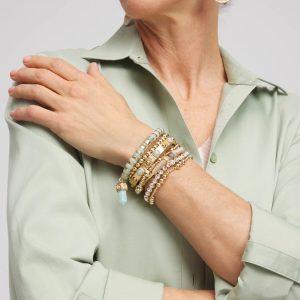 The new perfectly stackable Gold-tone Small Bead Stretch Bracelet is here for 2025. Add to elevate your bracelet stacks for this season and beyond.