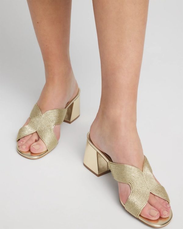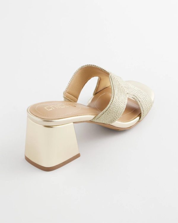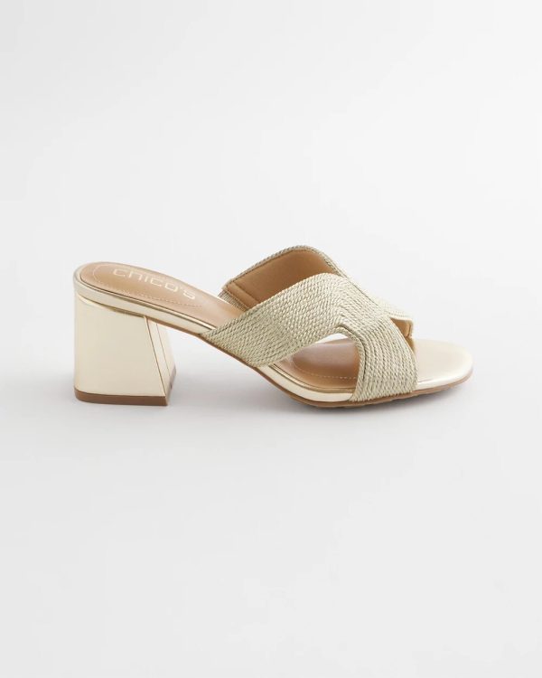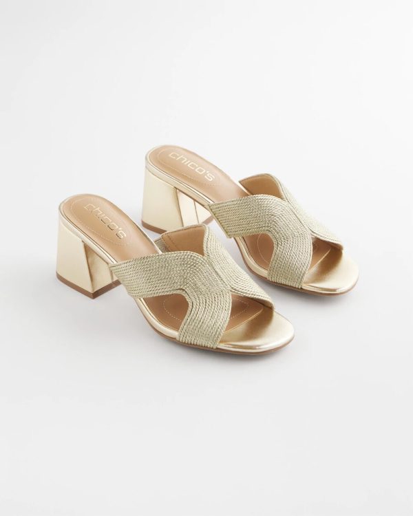 The new Gold Verona Block Heels feature a metallic twisted cord design. As always, expect all-day comfort with Chico’s Dual pod memory foam padded sock design.